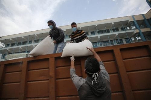 UNRWA distribui alimentos a famílias em Gaza, 2 de abril de 2020 [Mohammed Asad/Monitor do Oriente Médio]