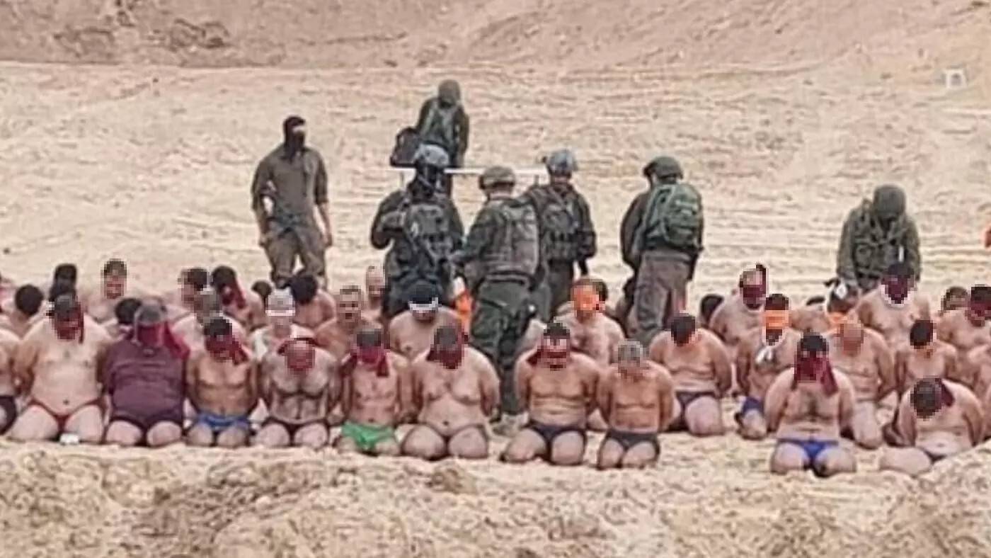 Homens palestinos são cercados e despidos pelas forças israelenses em Gaza antes de serem levados para um local não revelado [Screengrab/X]