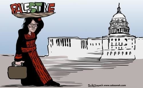 Rashida Tlaib, primeira congressista palestina eleita para a Câmara dos Estados Unidos – cartum [Sabaaneh/Monitor do Oriente Médio]