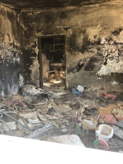 Restos carbonizados da casa da família Dawabsheh em Duma [Suha Shariff]