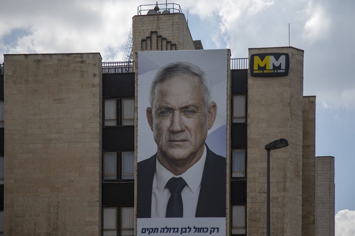 Pôster da candidatura de Benny Gantz é visto antes das últimas eleições gerais em Jerusalém, em 16 de setembro de 2019. [Faiz Abu Rmeleh/Agência Anadolu]