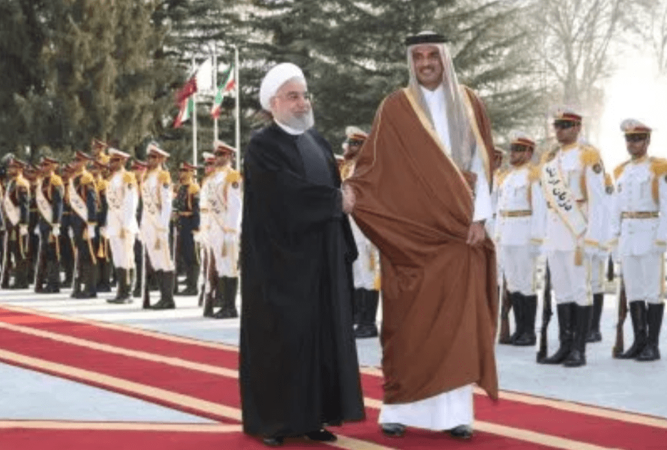 O Emir do Catar elogiou a posição do Irã nos anos recentes, em particular, diante do pesado bloqueio imposto por Arábia Saudita, Emirados Árabes Unidos, Bahrein e Egito ao país árabe, a partir de 5 de junho de 2017, sob alegação de apoio ao terrorismo. O Irã auxiliou efetivamente o governo catariano ao abrir seus portos e espaço aéreo.