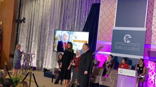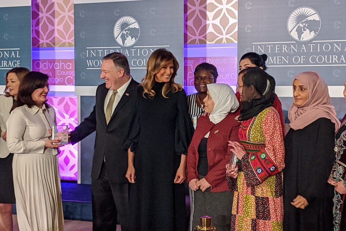 A refugiada residente em Manchester foi condecorada em cerimônia conduzida pelo Secretário de Estado americano Mike Pompeo, nesta quarta-feira (4). A primeira-dama dos Estados Unidos Melania Trump discursou no evento e exaltou as conquistas das mulheres antes de lhes conceder o prêmio.