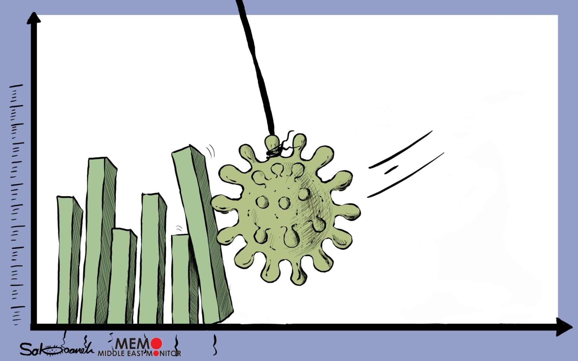 O coronavírus afeta a economia mundial – Charge [Sabaaneh / MiddleEastMonitor]
