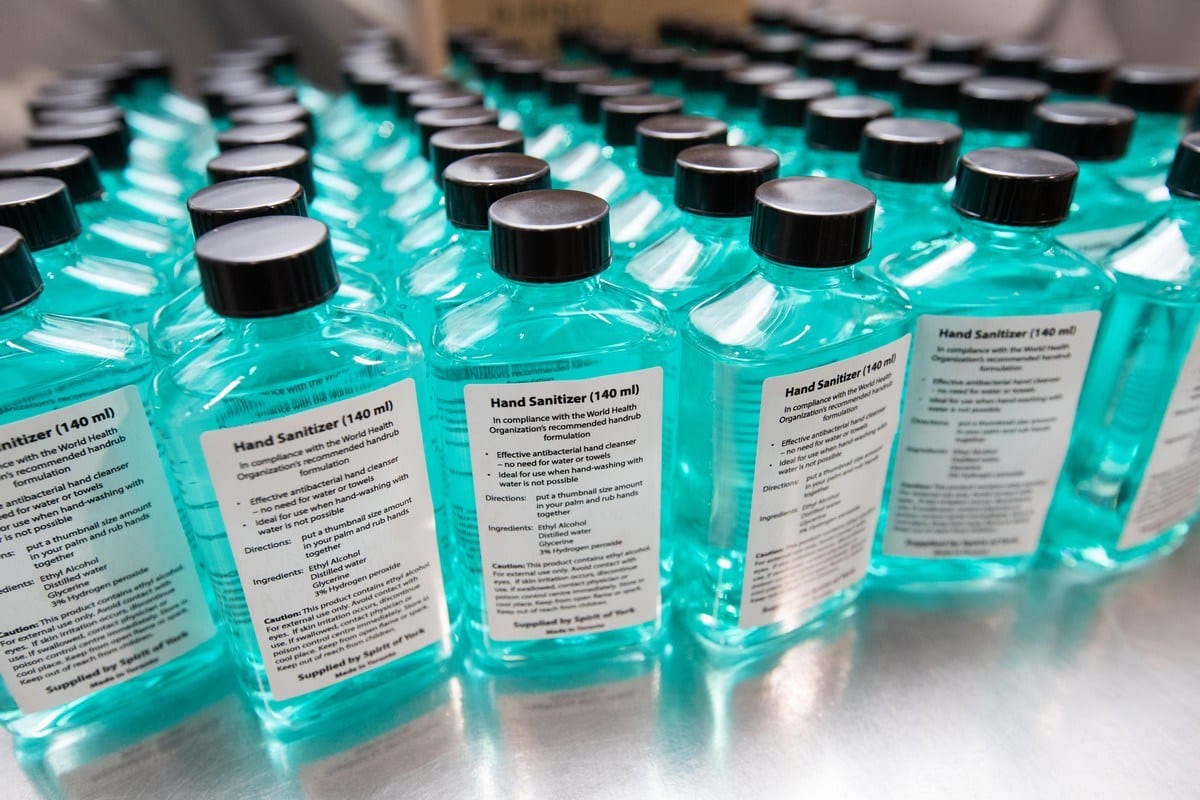 A empresa começou a fabricar desinfetantes para as mãos desde que os suprimentos desde que os suprimentos acabaram devido ao COVID-19. Em 19 de março de 2020 [Lars Hagberg/AFP/Getty Images]