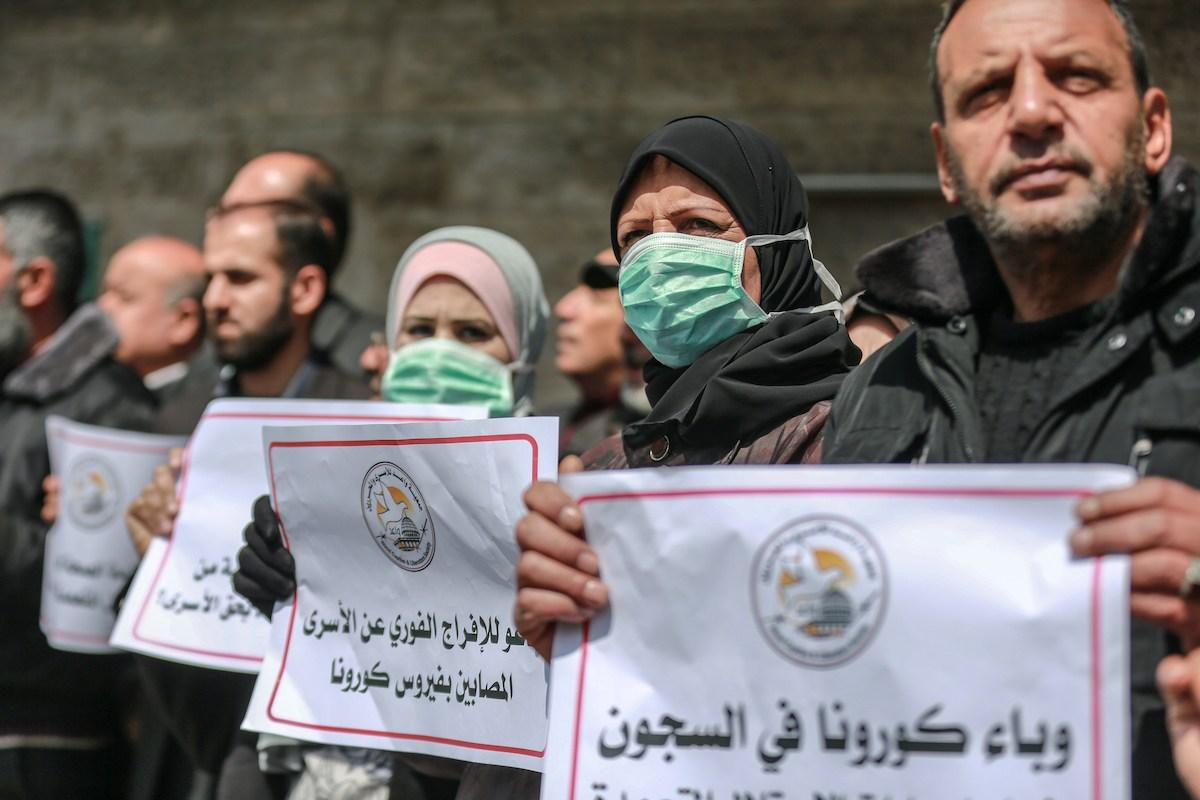 Protesto exige proteção contra coronavírus (COVID-19) para palestinos mantidos em prisões israelenses. Cidade de Gaza, em 19 de março de 2020. [Ali Jadallah – Agência Anadolu]