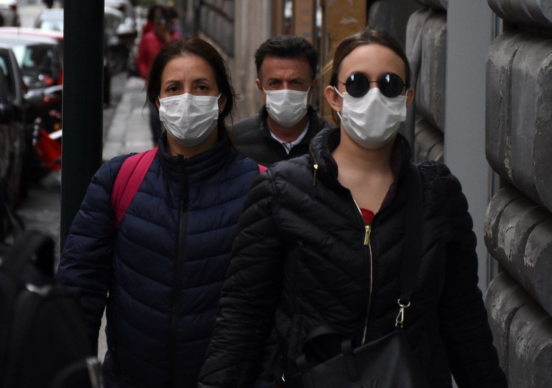 Pessoas vestem máscaras nas ruas de Roma conforme aumenta exponencialmente a taxa de mortalidade do coronavírus (covid-19) na Itália, em 2 de março de 2020 [Baris Seçkin/Agência Anadolu]