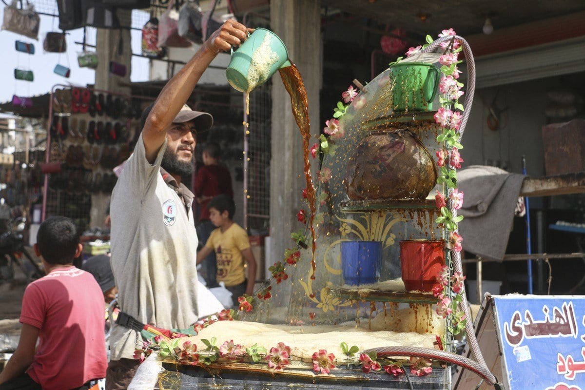 Sublinhando que seu salário médio diário é de 3,5 dólares, Hammud, pai de 11 anos, disse que o preço da comida triplicou perto do Eid.