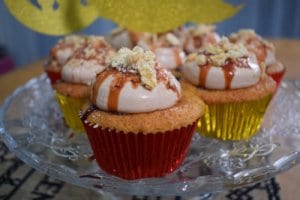 - Após os cupcakes esfriarem por completo, coloque o glacê e um pouco de melaço de tâmara sobre a massa. Complete com grãos esmagados de gergelim e aproveite!