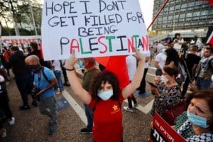 O protesto em Tel Aviv exibiu bandeiras palestinas e cartazes com as palavras de ordem “Vidas palestinas importam”, em referência unitária às lutas dos povos oprimidos em todo o mundo e ato de solidariedade ao movimento Black Lives Matter (Vidas Negras Importam), para condenar o racismo institucional e a brutalidade policial.