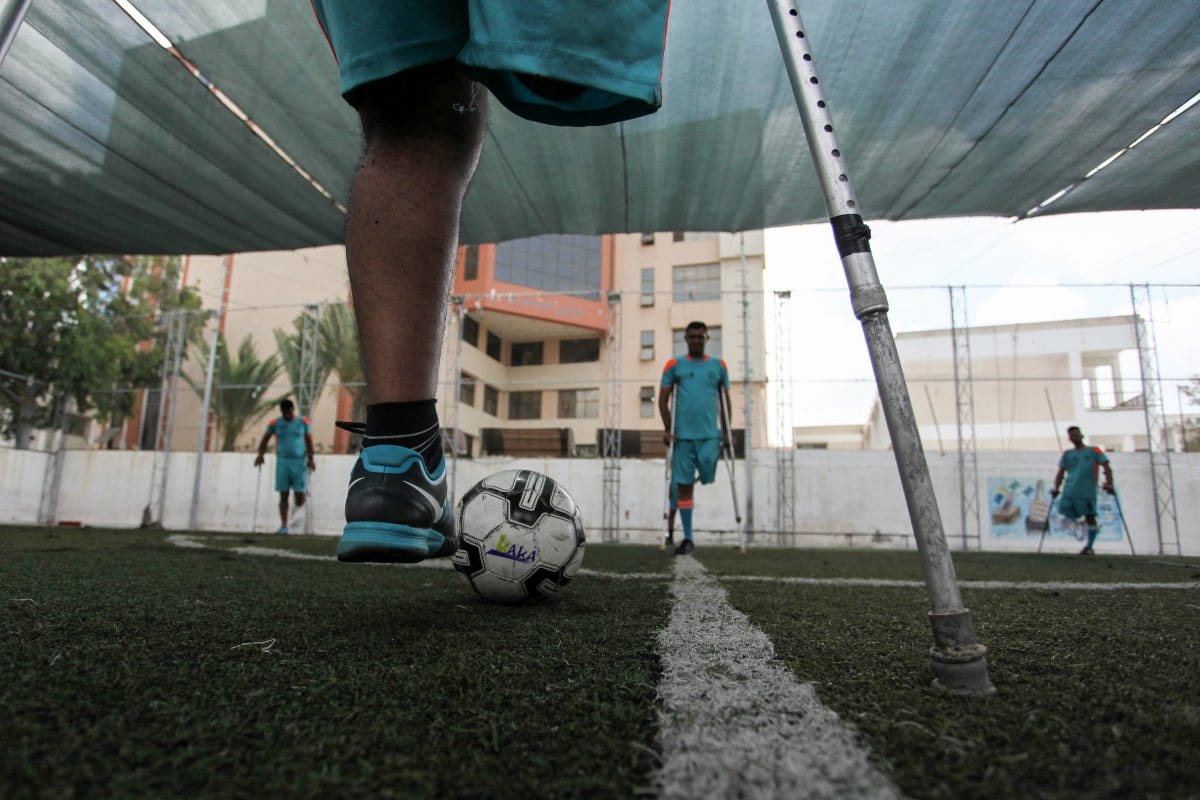 Jovens jogadores de futebol palestinos, todos amputados e muitos usando muletas voltaram ao campo em Gaza na terça-feira pela primeira vez desde que as restrições ao coronavírus foram aliviadas no território.
