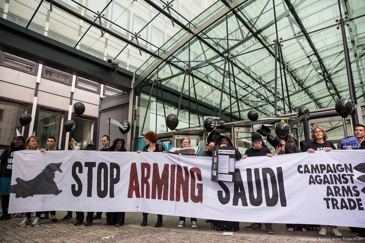 ![Ativistas de direitos humanos protestam contra a venda de armas do Reino Unido à Arábia Saudita, em Londres, 11 de julho de 2016 [Campanha contra o Comércio de Armas/Flickr]](https://www.monitordooriente.com/wp-content/uploads/2020/07/2016_7_11-Human-rights-campaigners-protest-against-Farnborough-International-arms-fair28264878155_83d05605b7_o.jpg)