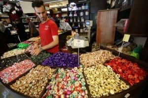 Em preparação para Eid Gazans, moradores vão ao mercado de doces, 30 de julho de 2020 [Mohammed Asad/ Monitor do Oriente Médio]