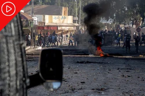 Protestos violentos eclodiram na cidade de Sbeitla, oeste da Tunísia, hoje, depois que um cidadão foi morto sob os escombros de sua loja durante a execução de uma ordem de demolição do comércio por estar “sem licença”