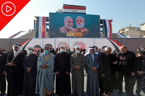 Neste domingo (3), dezenas de milhares de iraquianos entoaram palavras de ordem contra os Estados Unidos na Praça Tahrir, no centro de Bagdá, em ato convocado para marcar o primeiro aniversário do assassinato do general iraniano Qasem Soleimani e Abu Mahdi al-Muhandis, vice-comandante do grupo local Hashd al-Shaabi.