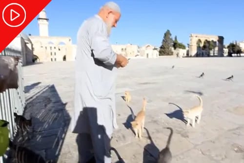 Ghassan Yunis Abu Ayman conquistou corações em todos os lugares por alimentar gatos e pássaros no complexo da mesquita de Al-Aqsa, em Jerusalém, por quase três décadas.