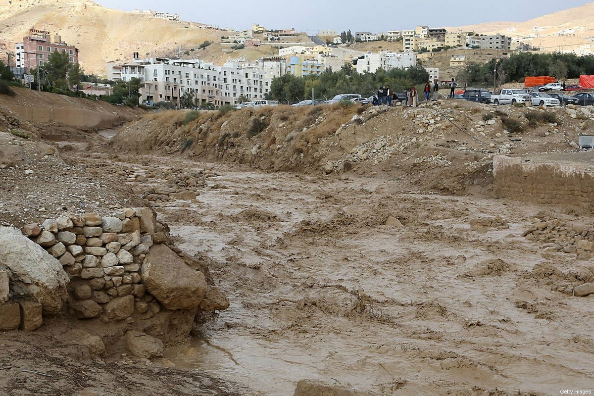 Tempestades atingiram a Jordânia nesta quinta-feira, com inundações em diversas localidades.