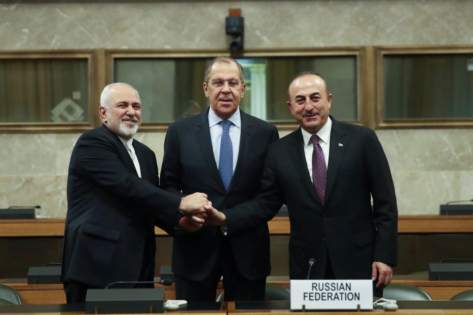 ![O Ministro das Relações Exteriores da Turquia, Mevlut Cavusoglu (dir.), o Ministro das Relações Exteriores da Rússia, Sergei Lavrov (centro) e o Ministro das Relações Exteriores do Irã Javad Zarif (esq.) posam para uma foto durante uma reunião para discutir a criação de um comitê para redigir um nova constituição como parte das negociações sobre a crise síria no Escritório das Nações Unidas em Genebra, Suíça, em 18 de dezembro de 2018. [Fatih Aktaş - Agência Anadolu]](https://www.monitordooriente.com/wp-content/uploads/2021/03/20181218_2_33995544_40009448.jpg)