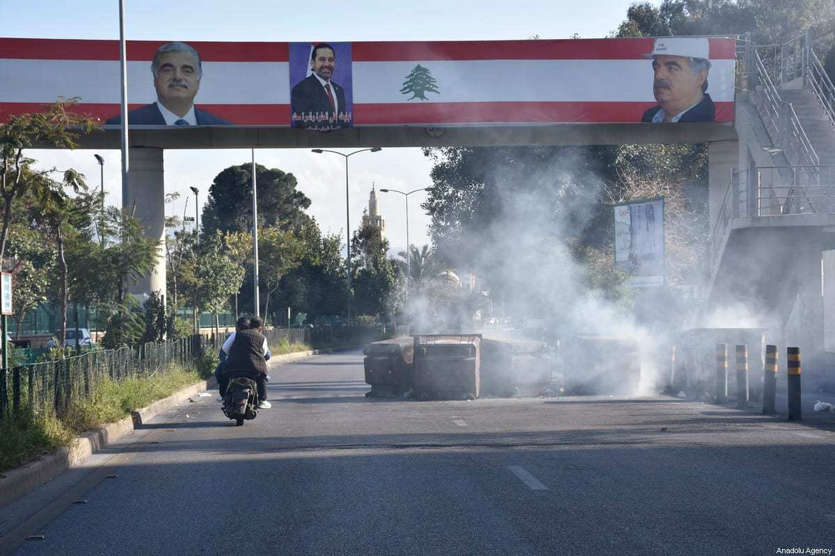Manifestantes incendiaram pneus e bloquearam estradas em Beirute na terça-feira (16). Autoridades temem maiores insurreições, perante o desemprego, a inflação, a pandemia de coronavírus e a crise financeira, com raízes em décadas de corrupção e desperdício público.