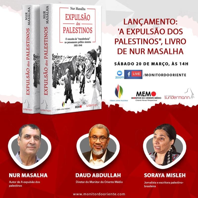 Debate sobre o livro A expulsão dos palestinos, de Nur Masalha, lançamento do Monitor do Oriente Mèdio (MEMO), Fórum Latino-Palestino e Editora Sundermann