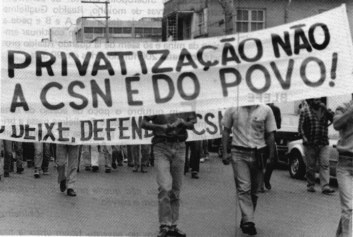 A CSN foi importante base da industrialização nacional, mas na década de 80, passou a enfrentar grave crise financeira. Em 2 de abril de 1993, após um intenso processo de cortes em nome do saneamento financeiro e demissões, e com o movimento sindical dividido, a CSN foi arrematada por US$ 1,05 bilhão, pelo consórcio de grupos empresariais privados Vicunha e Bamerindus e pela então estatal Vale do Rio Doce a Companhia Siderúrgica Nacional (CSN), dando início a uma série de privatizações no Brasil.