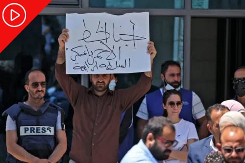 O Sindicato dos Jornalistas Palestinos condenou os ataques conduzidos pelas forças de segurança contra profissionais de imprensa que cobriam os protestos.