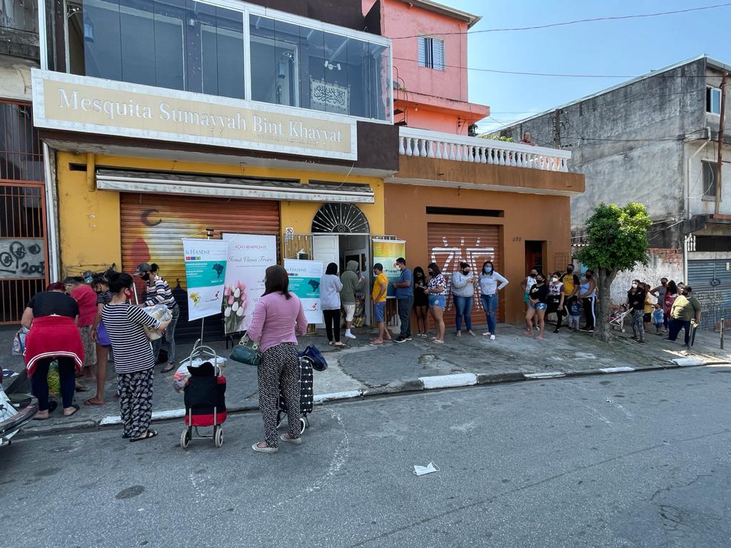 Campanha Cinco Pilares e Hasene, apoiada pela UNI, faz entrega de cestas básicas na Mesquita Sumayyah Bint Khayyat, do Embu das Artes, para famílias refugiadas no Brasil [ Monitor do Oriente Médio]