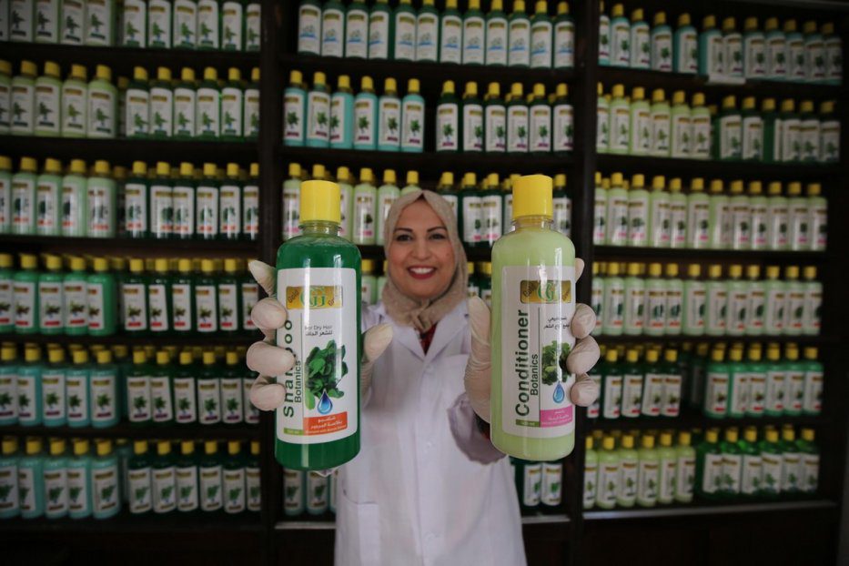 Um grupo de mulheres, na empresa Gold Green (GG), em Gaza, fabrica uma gama de cosméticos a partir de plantas, sem radicais livres e químicos, e que, portanto, não têm efeitos colaterais.