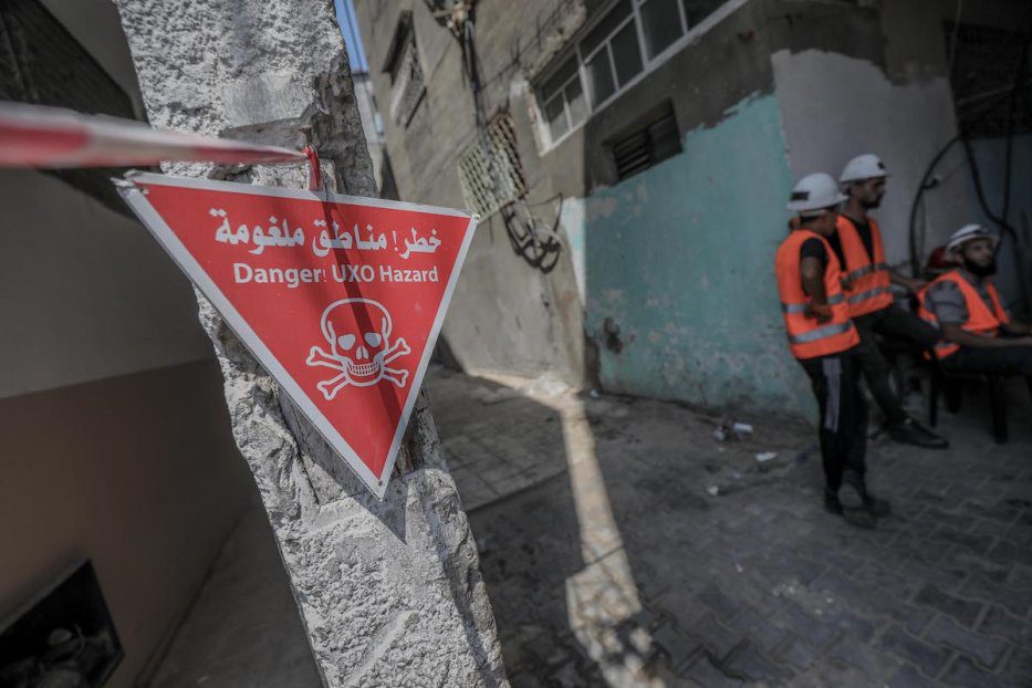 Equipes palestinas trabalham há três meses para remover centenas de bombas israelenses ainda por explodir. Israel também atingiu a sede do serviço antibombas de Gaza.