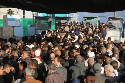 Os palestinos atravessam o posto de controle de Qalandiya para realizar a primeira Oração do mês sagrado islâmico do Ramadã na Mesquita Al-Aqsa, em Ramallah, Cisjordânia, em 10 de maio de 2019 [Issam Rimawi/Agência Anadolu]
