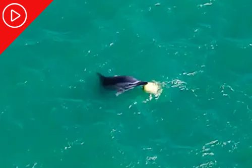 Golfinho brinca com bóia na costa da Turquia