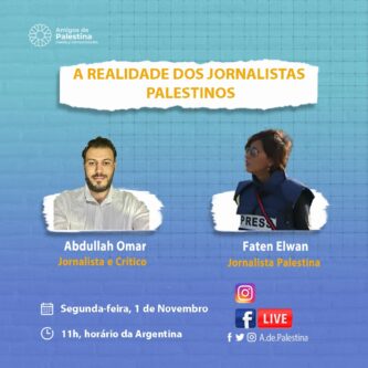 Acompanhe a live ao vivo nas redes do Amigos da Palestina e aprenda mais sobre o trabalho dos jornalistas palestinos nos territórios ocupados, os perigos e dificuldades enfrentadas.