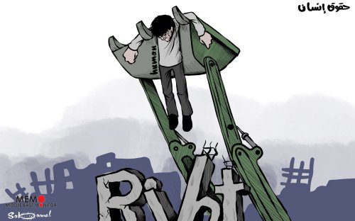 Forças israelenses carregam o corpo de um palestino com um trator [Sabaaneh/Monitor do Oriente Médio]
