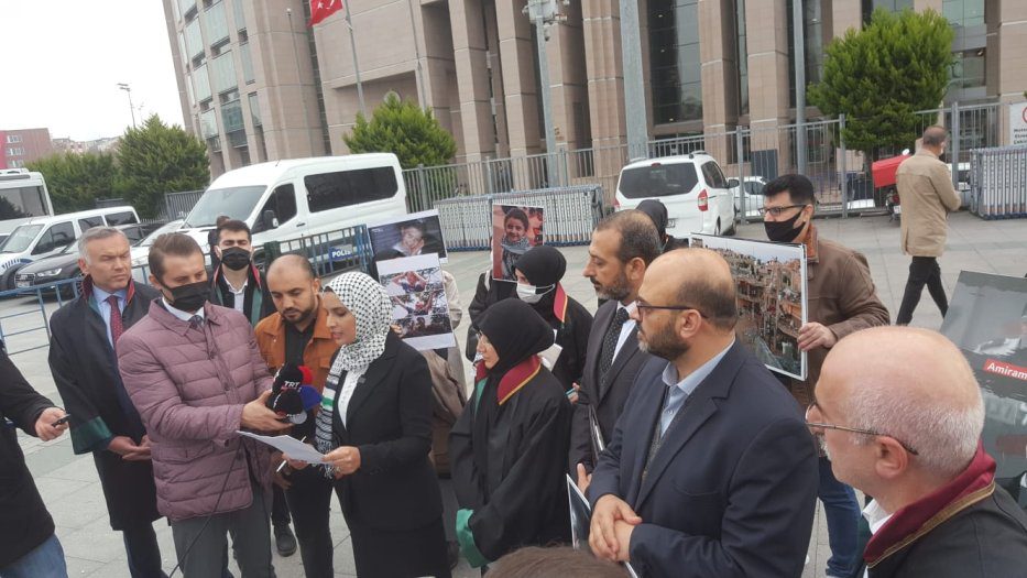 Leitura de declaração em frente ao Palácio da Justiça Çağlayan em Istambul, novembro de 2021 [Ansam Abu Owda]