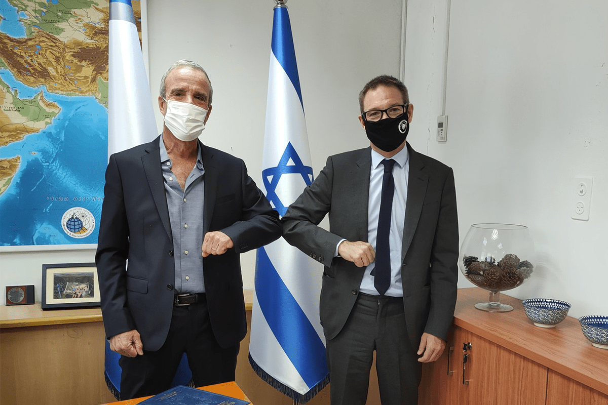 Embaixador Britânico Neil Wigan (dir) e Elazar Stern, Ministro de Inteligência de Israel (esq) [@Elazar_stern/ Twitter]