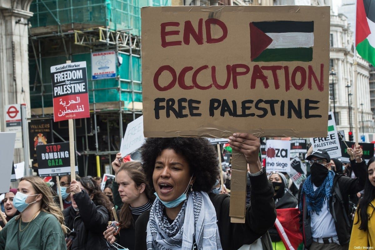 Protesto em solidariedade ao povo palestino, em Londres, Inglaterra, 22 de maio de 2021 [Guy Smallman/Getty Images]