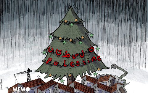 Outro Natal na Palestina, entre expansão e despejo em massa – Charge [Sabaaneh/Monitor do Oriente Médio]