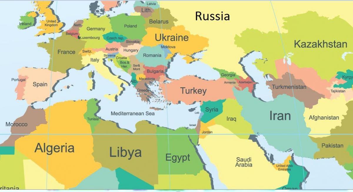 Mapa da Russia, Ucrância e Oriente Médio [Maps-Russia]