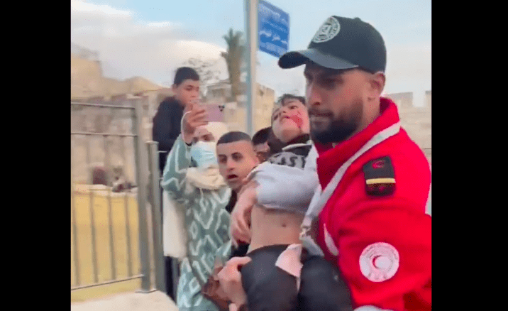 A polícia israelense atacou mulheres e crianças com bombas de efeito moral e canhões d’água de alta pressão. Uma garota em cadeira de rodas foi agredida e outra agarrada pelos cabelos e outro imobilizado com o joelho de um policial e outros espancados.