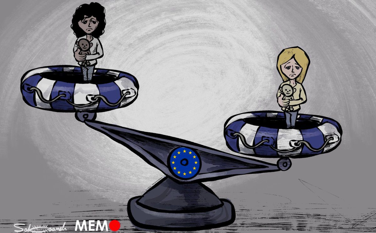 Cobertura da crise de refugiados na Ucrânia é ‘racista’ – Charge [Sabaaneh/Monitor do Oriente Médio]