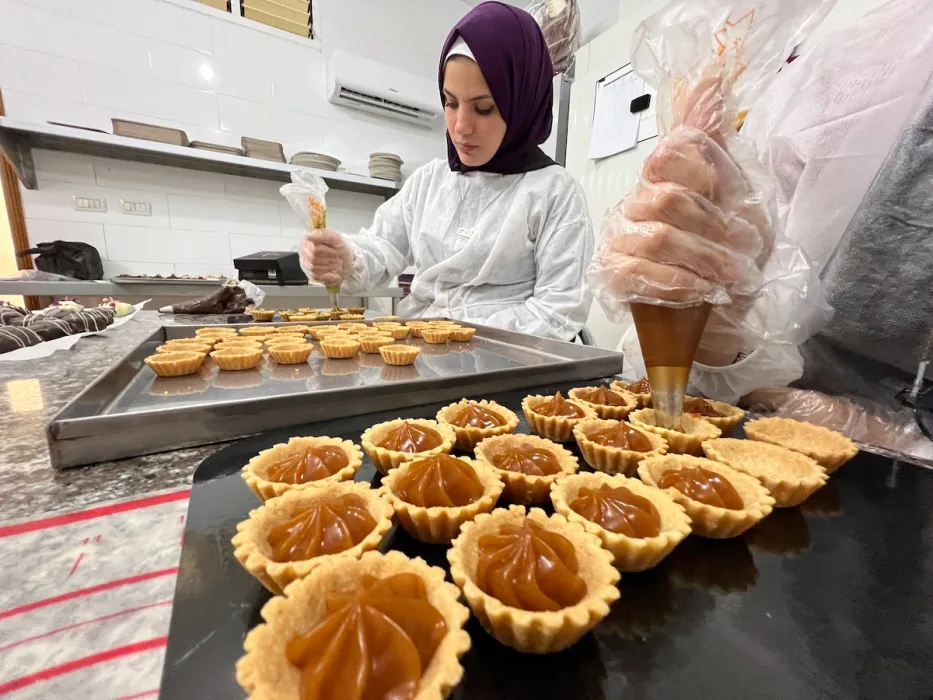 Mulheres preparam tortinhas e outras sobremesas antes da celebração do Eid El-Fitr para marcar o fim do mês de jejum em Gaza em abril de 2020, em 24 de abril de 2022 [Mohamed Asad/Monitor do Oriente Médio]