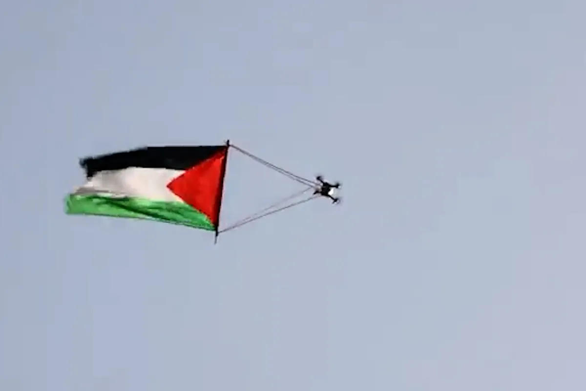 Os moradores relataram que a bandeira foi hasteada usando um “pequeno drone à distância, pouco antes de as forças israelenses começarem a perseguir o homem palestino que estava controlando o drone”.