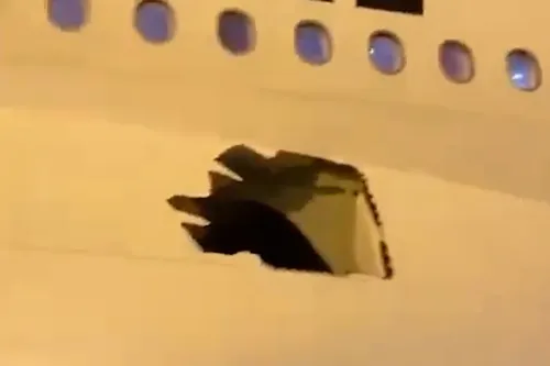 A explosão dos pneus de voo da Emirates faz um buraco no avião