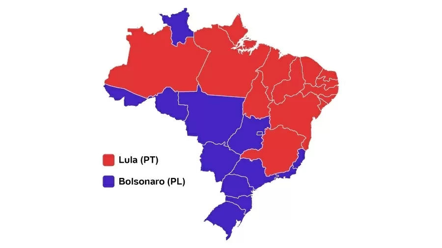 Mapeamento indica votações de Lula e Bolsonaro no primeiro turno das eleições presidenciais de 2022 [Imagem UOL]