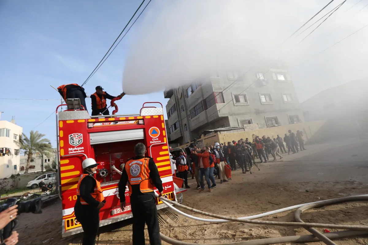 Em Gaza, o governo administrado pelo Hamas disse que havia ordenado aos Serviços de Defesa Civil que mobilizassem todo o seu equipamento para extinguir o incêndio o mais rápido possível, a fim de resgatar qualquer pessoa que estivesse presa, mas a falta de equipamento necessário fez com que seus esforços falhassem.