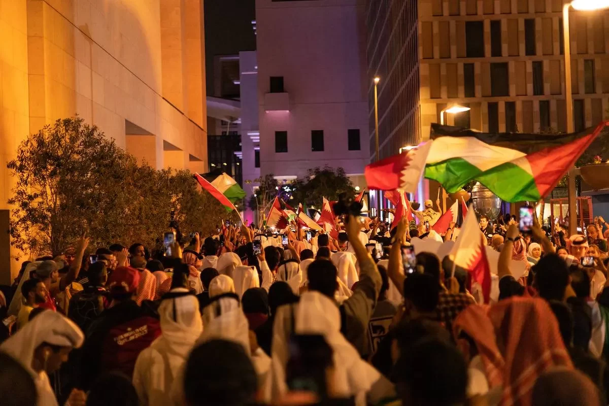 Torcedores de futebol participam de evento como parte da Copa do Mundo da FIFA Catar 2022 no bairro de Musherib, em Doha, Catar, em 24 de novembro de 2022. [Abdullah Kiswani - Agência Anadolu]