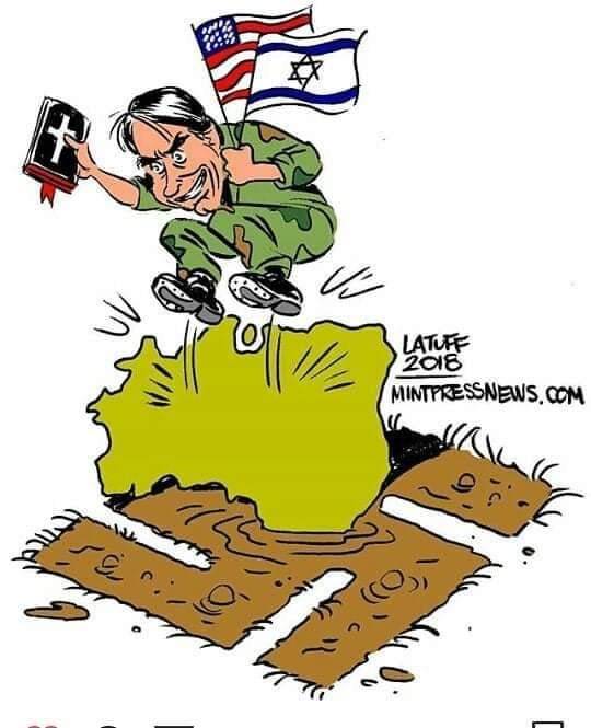 Em linha com a propaganda ideológica pró-sionista que caracterizou os últimos quatro anos, o deputado Eduardo Bolsonaro reivindicou no Twitter, em 4 de janeiro o legado de seu pai de aliança incondicional a Israel e contrainformação, postando imagem de reportagem com a seguinte manchete: “Em primeira mudança, governo Lula critica Israel e rompe política bolsonarista.” Jogando para a claque bolsonarista neopentecostal, comentou: “Parabéns a todos os cristãos que votaram no L.” Como se a questão fosse religiosa, e não política, reproduzindo distorções que enganam o povo brasileiro e que emulam representações bíblicas utilizadas para a Nakba – a catástrofe palestina, desde a formação do Estado racista de Israel, em 15 de maio de 1948, mediante limpeza étnica planejada.