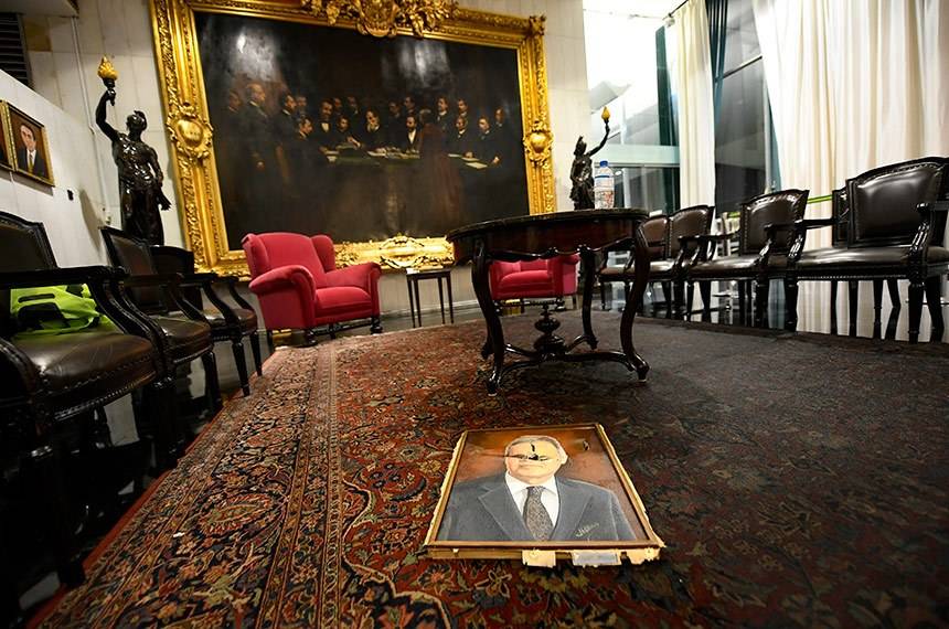 As portas de entrada da sala da presidência do Senado e o mobiliário da ante-sala foram totalmente destruídos. Armários foram revirados e materiais de trabalho, perdidos, além de câmeras de segurança quebradas.