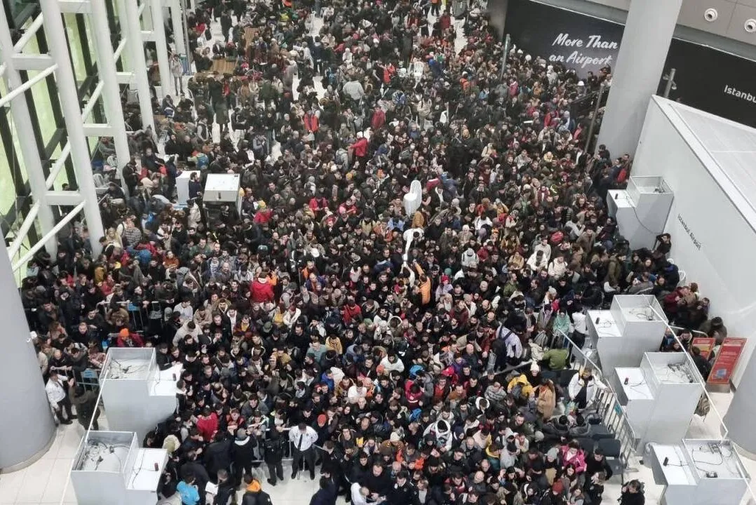 Post de Mehmet Çelik (@celik) mostra a aglomeração no aeroporto de Istambul [Twitter]