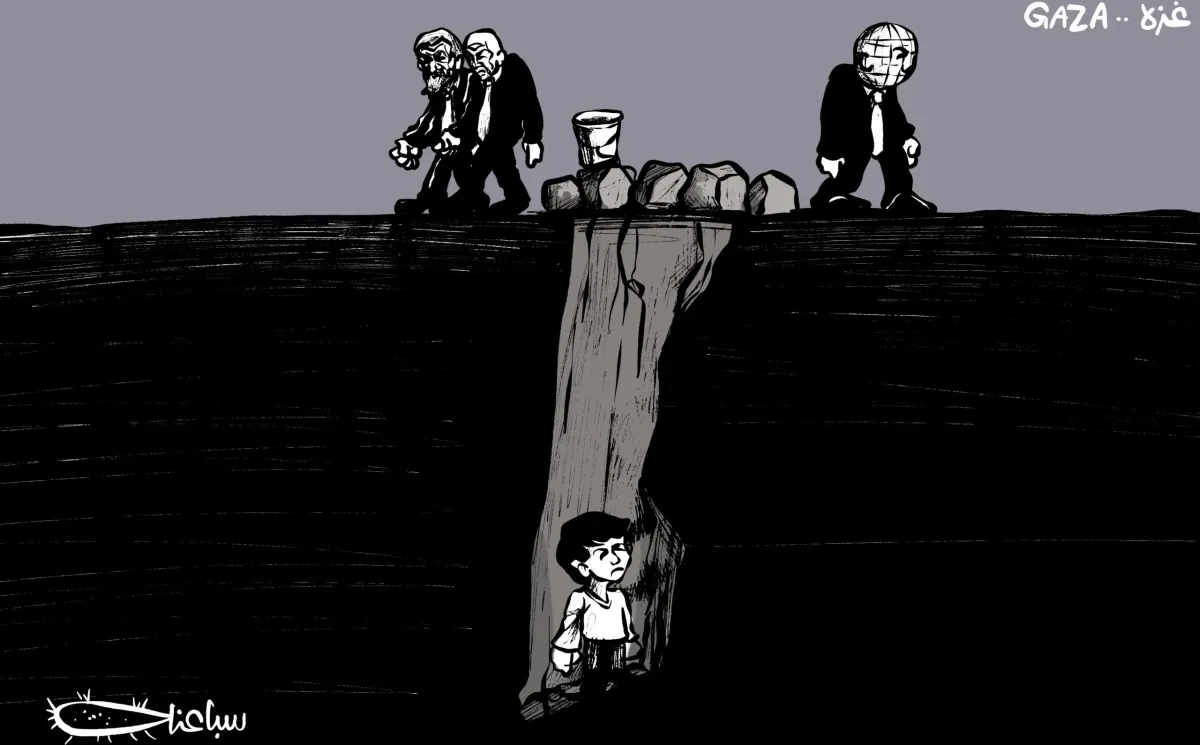 Quando a comunidade internacional e a política palestina estiverem abandonando Gaza, ela ainda se levantará! – Caricatura [Sabaaneh/Monitor do Oriente Médio]